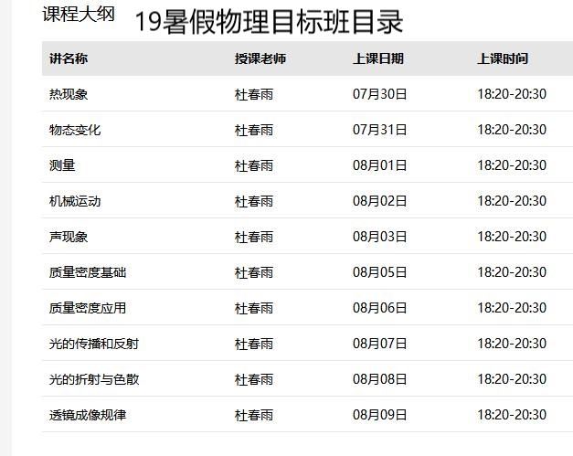 2019暑[直播课]初一升初二物理 学而思目标班(杜春雨)